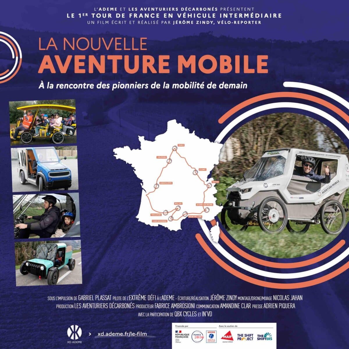 Suivez le vélo‑reporter Jérôme Zindy dans un périple à travers la France au guidon d’un véli, un véhicule léger entre vélo et voiture électrique. À travers rencontres et découvertes, le film met en lumière une nouvelle manière de se déplacer, plus durable, accessible et « made in France ». Une aventure inspirante qui donne envie d’imaginer la mobilité de demain en zone rurale.